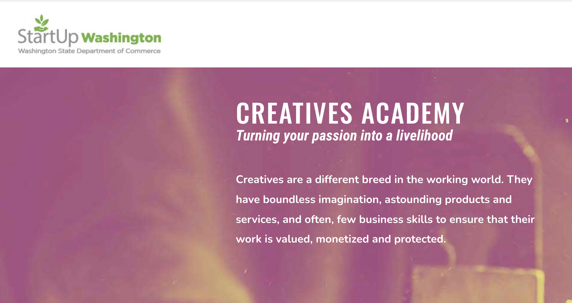 Washington State gets two thumbs up for making some impressive investments in the statewide creative economy this year. More dollars to support the film industry! $45M in Working Washington grants! And time, energy and effort put into the launch of Creatives Academy, a cool new tool at the Department of Commerce that helps you turn your passion into a livelihood! Check it out and get some tips and tricks on marketing, pricing, pitching and more!